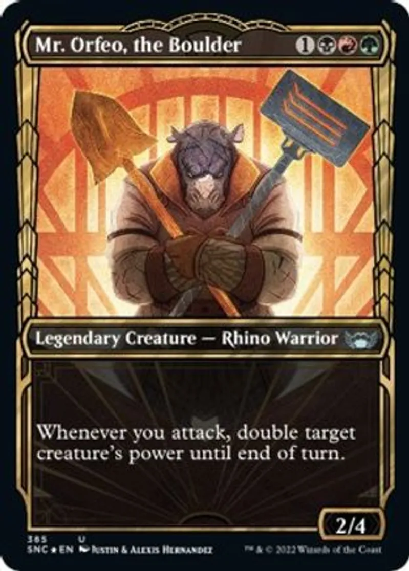 Mr. Orfeo, the Boulder (Gilded Foil) is a Uncommon in the set Streets of New Capenna.
