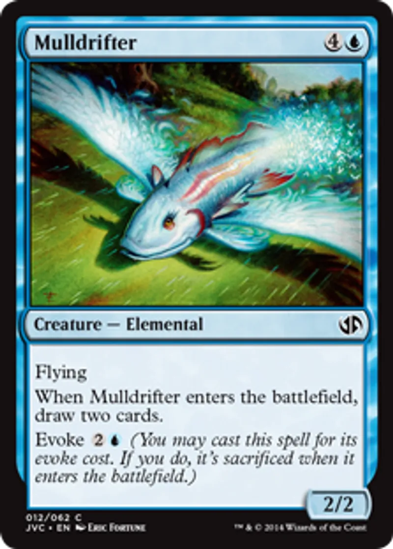 | Oracle Text | Flying When Mulldrifter enters the battlefield, draw two cards. Evoke {{2}}{{u}} (You may cast this spell for its evoke cost. If you do, it's sacrificed when it enters the battlefield.) | ||