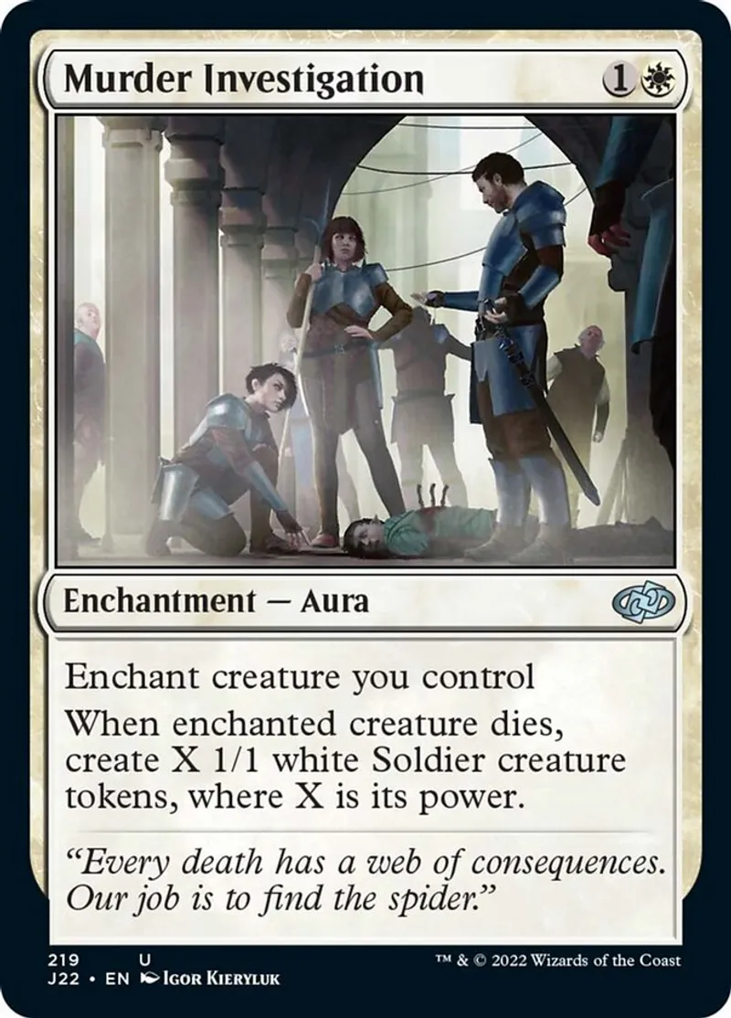 Magic: the Gathering (mtg) uncommon Enchantment — Aura Murder Investigation from Jumpstart 2022 (j22) last updated 2026-02-21 16:17:02