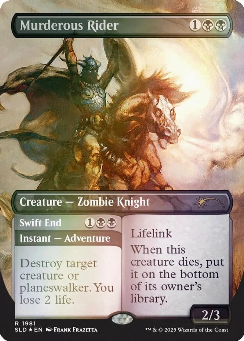 Magic: the Gathering (mtg) Rare creature — zombie knight Murderous Rider from Secret Lair Drop Series (SLD) last updated 2026-02-25 15:22:32