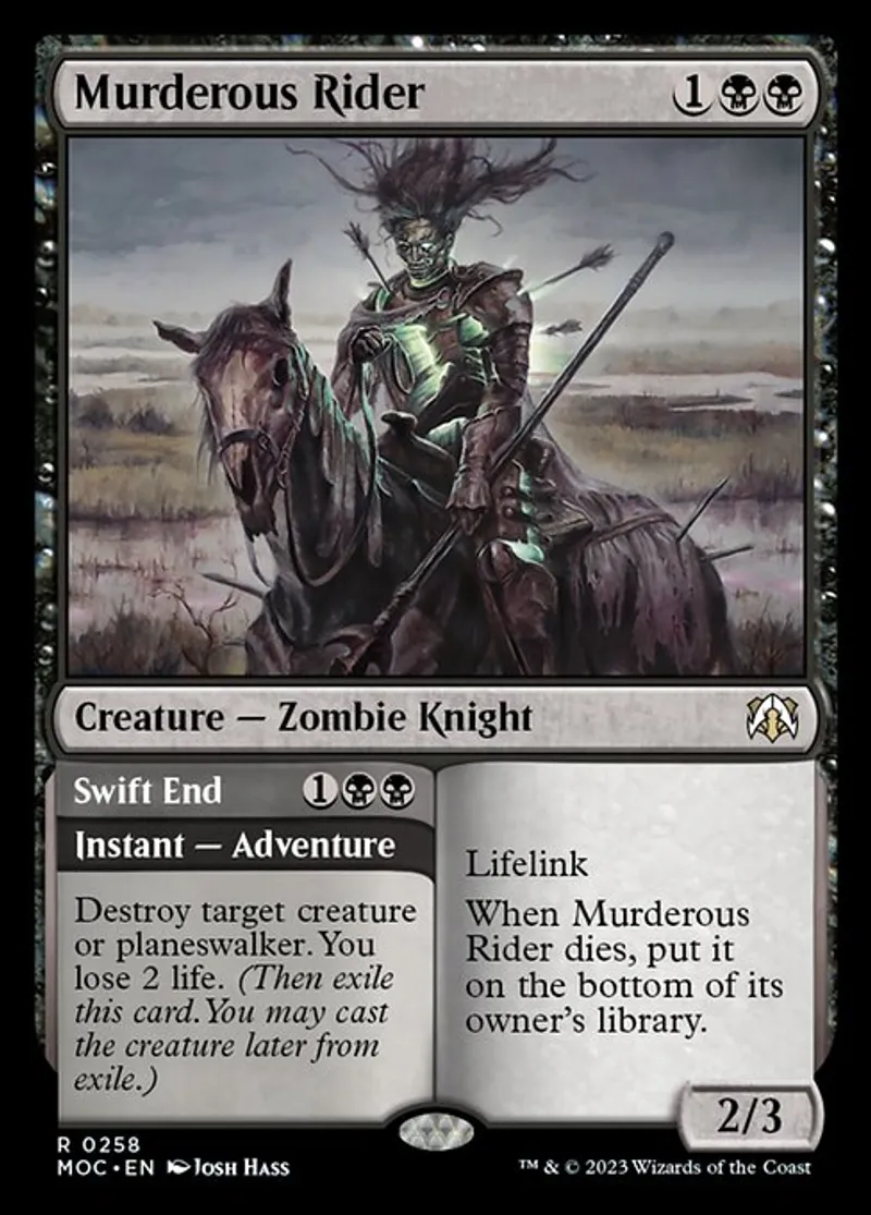Magic: the Gathering (mtg) Rare Creature — Zombie Knight // Instant — Adventure Murderous Rider from March of the Machine Commander (moc) last updated 2026-02-24 15:42:02