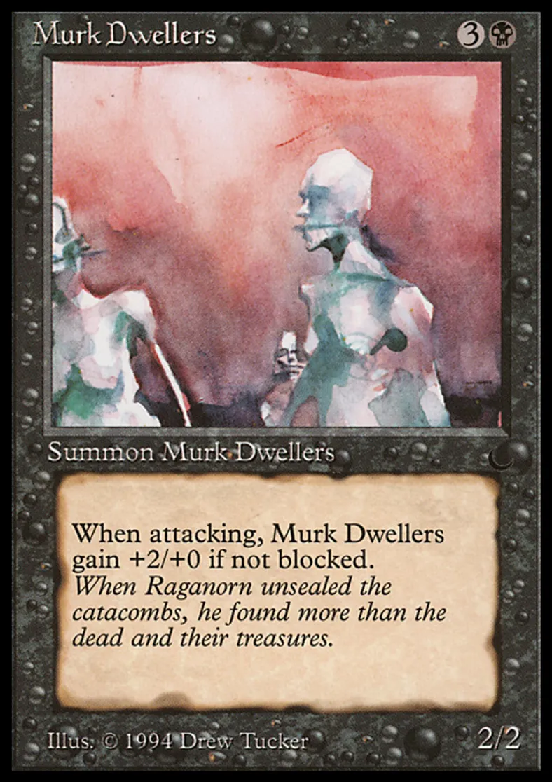 | Oracle Text | Whenever Murk Dwellers attacks and isn't blocked, it gets +2/+0 until end of combat. | ||