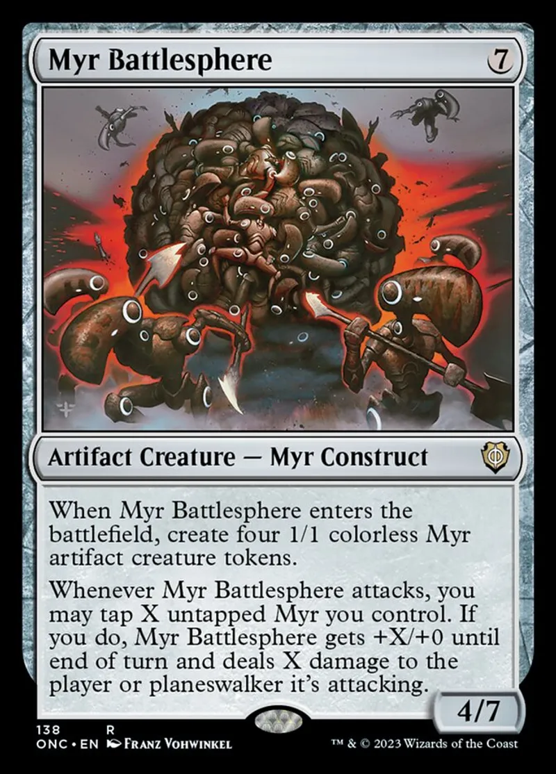 | Oracle Text | When Myr Battlesphere enters the battlefield, create four 1/1 colorless Myr artifact creature tokens.