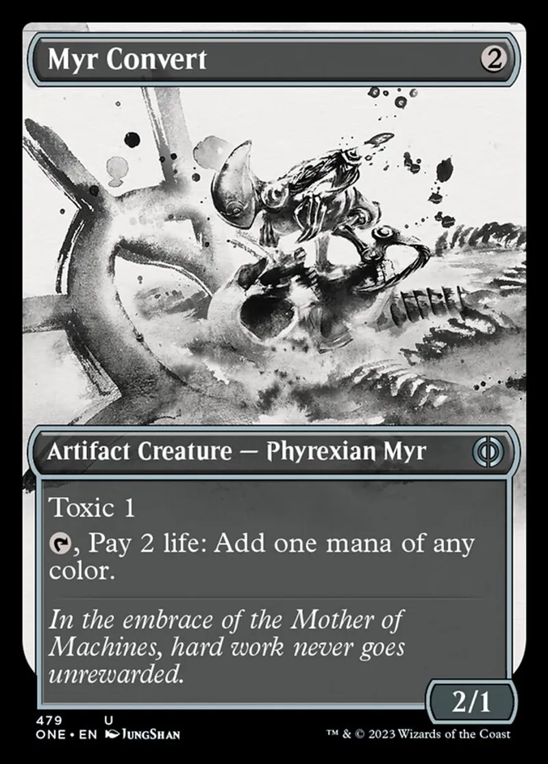 Myr Convert (Showcase) (Step-and-Compleat Foil) is a Uncommon in the set Phyrexia: All Will Be One.