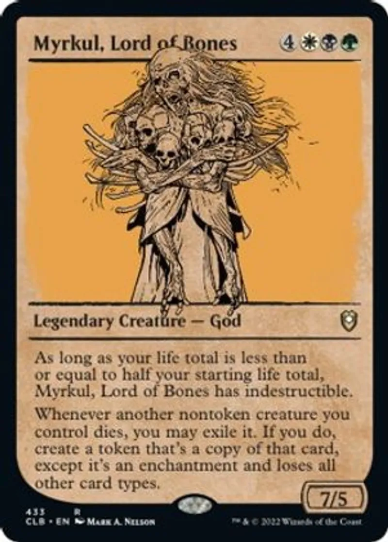 | Oracle Text | As long as your life total is less than or equal to half your starting life total, Myrkul, Lord of Bones has indestructible.