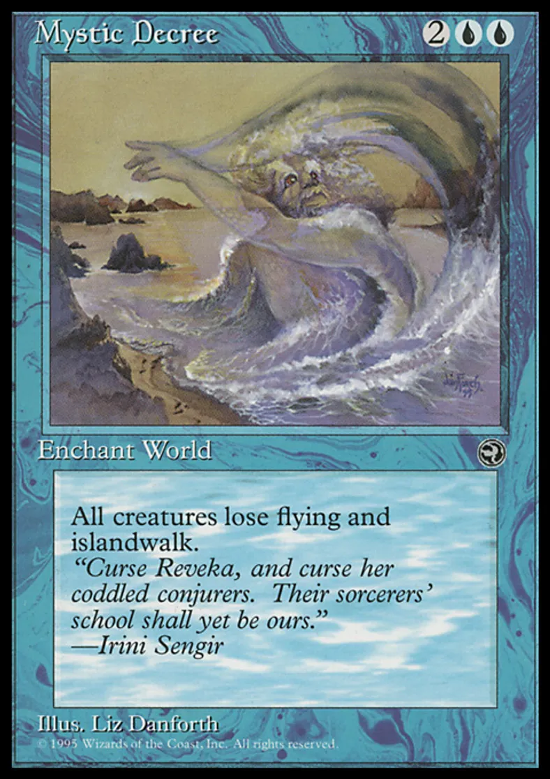 Magic: the Gathering (mtg) Rare World Enchantment Mystic Decree from Homelands (HML) last updated 2026-02-24 15:10:02