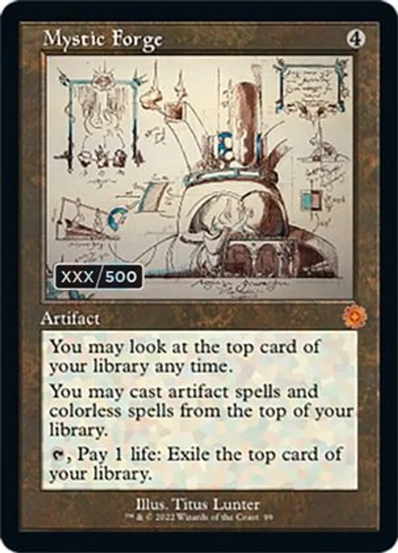 Magic: the Gathering (mtg) Mythic Rare Artifact Mystic Forge from The Brothers' War Serialized (SBRO) last updated 2026-02-07 14:26:02