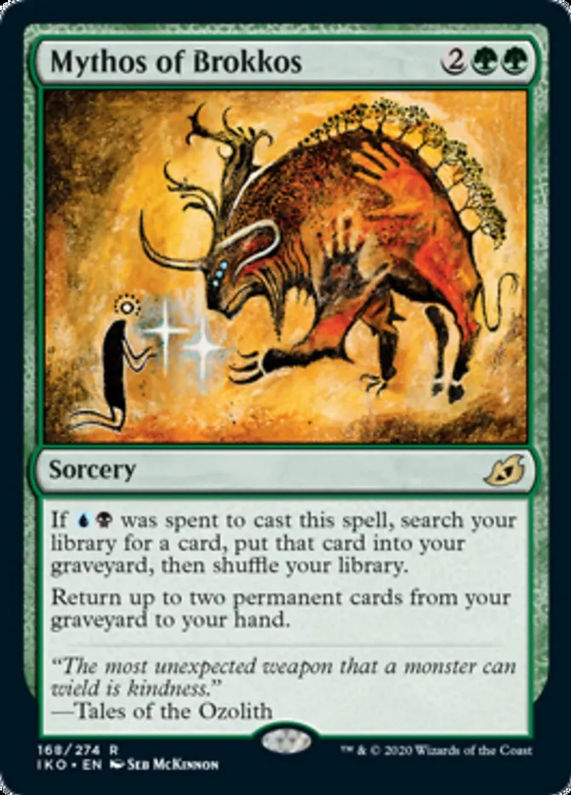 Magic: the Gathering (mtg) rare Sorcery Mythos of Brokkos from Ikoria: Lair of Behemoths (iko) last updated 2026-02-21 16:24:02