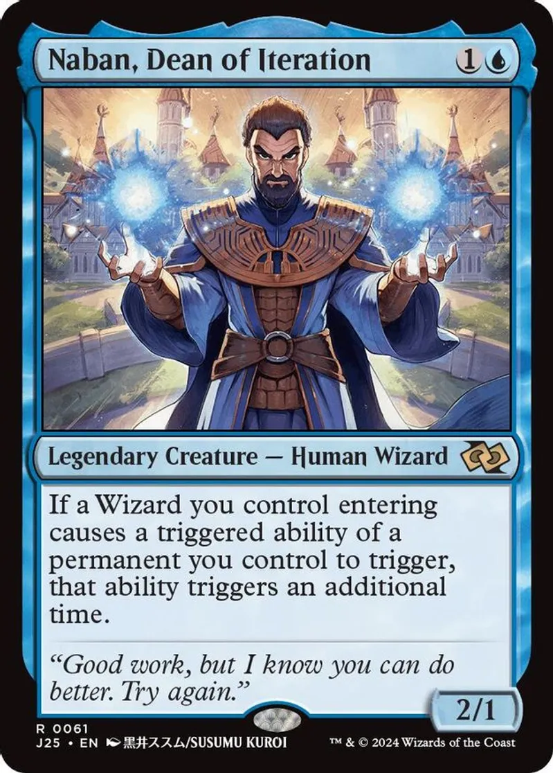 Magic: the Gathering (mtg) Rare legendary creature — human wizard Naban, Dean of Iteration from Foundations Jumpstart (J25) last updated 2026-02-24 15:19:32