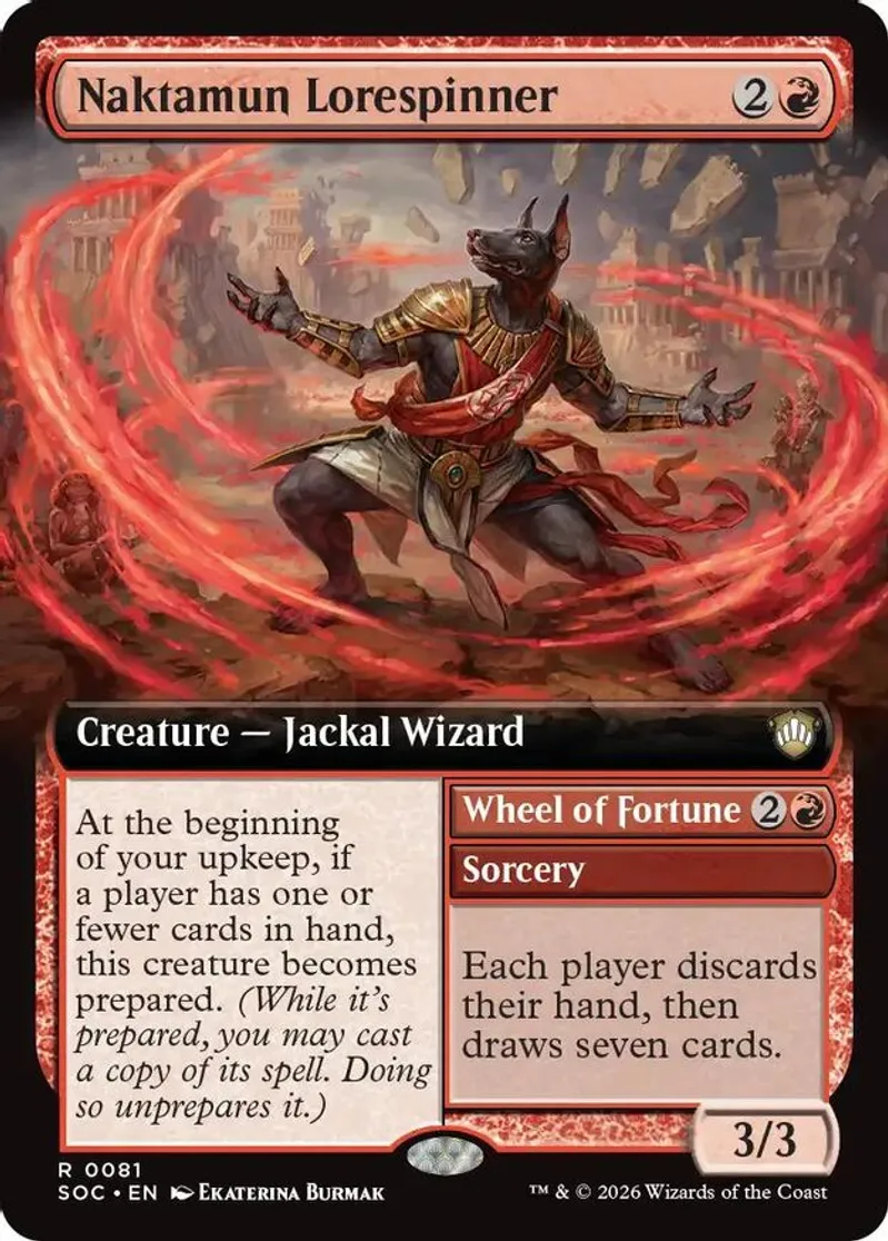 Magic: the Gathering (mtg) Rare creature — jackal wizard Naktamun Lorespinner from Commander: Secrets of Strixhaven (SOC) last updated 2026-04-17 00:31:03