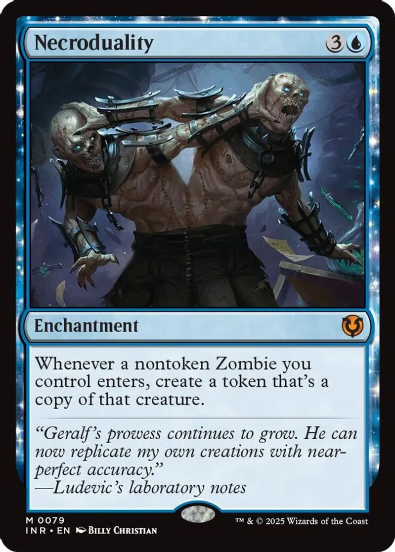Magic: the Gathering (mtg) Mythic Rare enchantment Necroduality from Innistrad Remastered (INR) last updated 2026-02-24 15:20:01