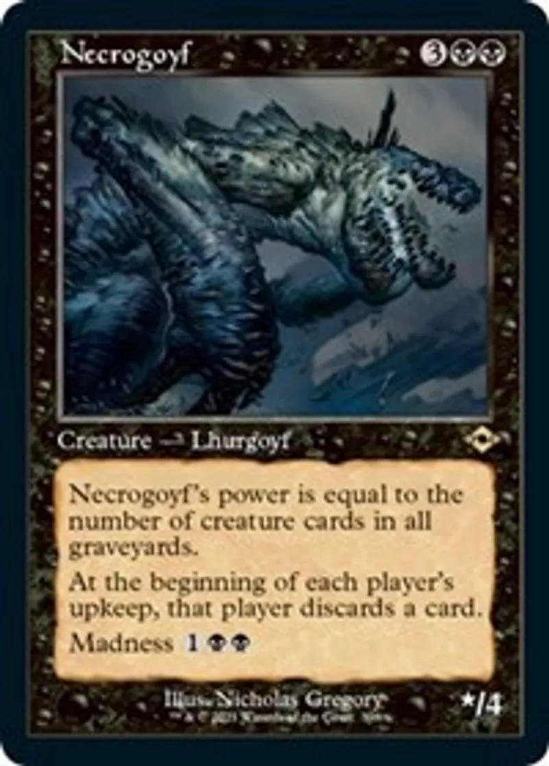 | Oracle Text | Necrogoyf’s power is equal to the number of creature cards in all graveyards.