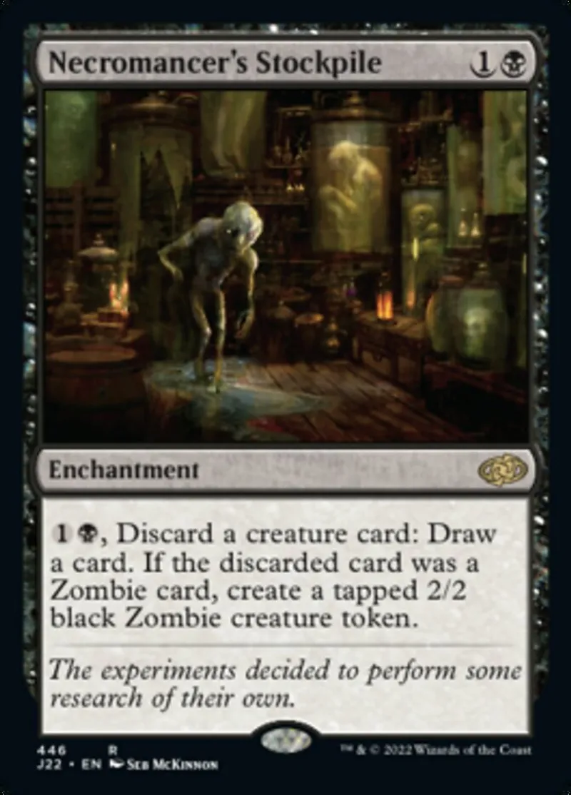Magic: the Gathering (mtg) rare Enchantment Necromancer's Stockpile from Jumpstart 2022 (j22) last updated 2026-02-25 15:41:02