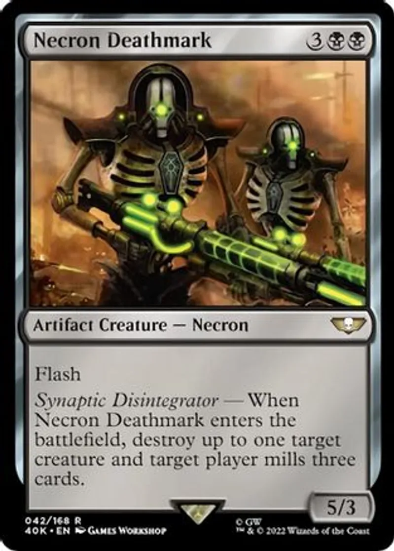 Synaptic Disintegrator — When Necron Deathmark enters the battlefield, destroy up to one target creature and target player mills three cards. | ||