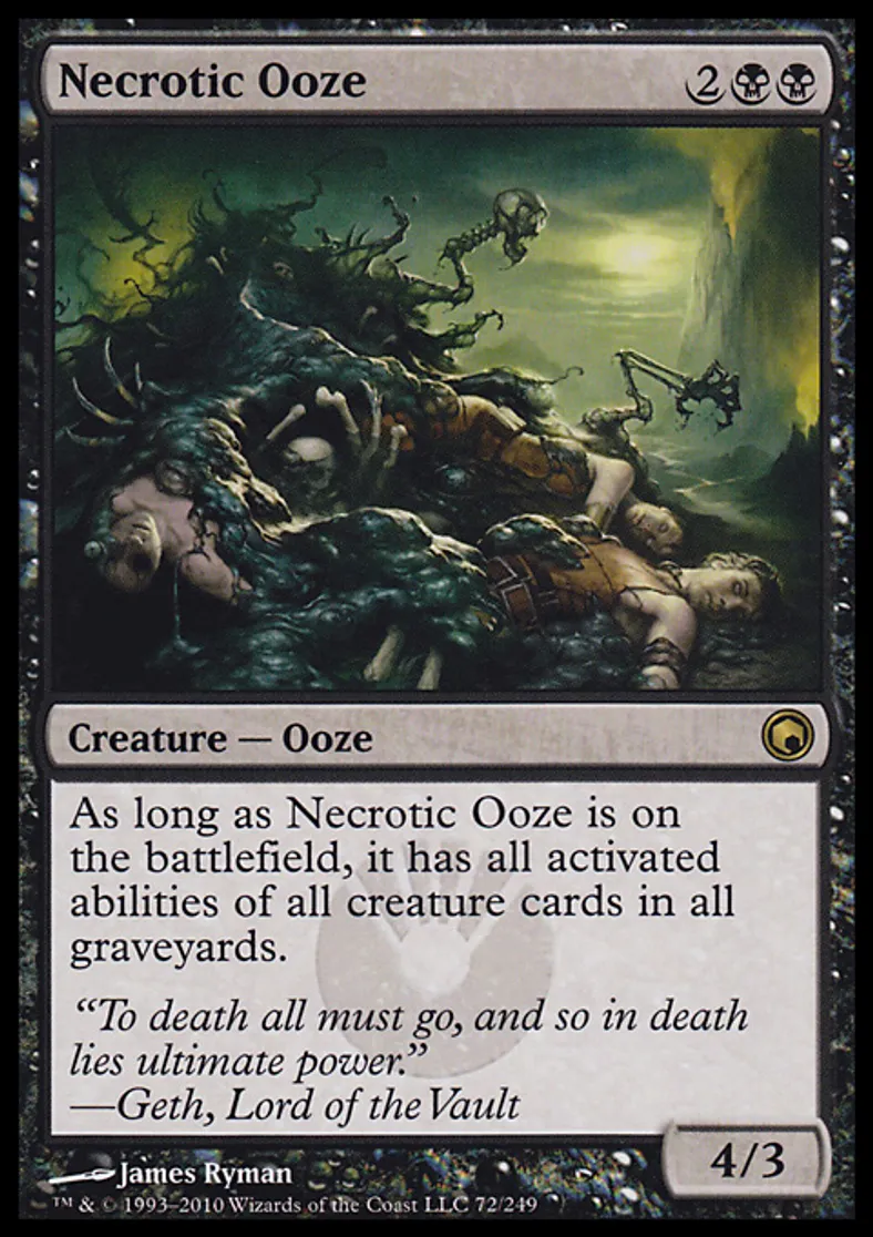 | Oracle Text | As long as Necrotic Ooze is on the battlefield, it has all activated abilities of all creature cards in all graveyards. | ||