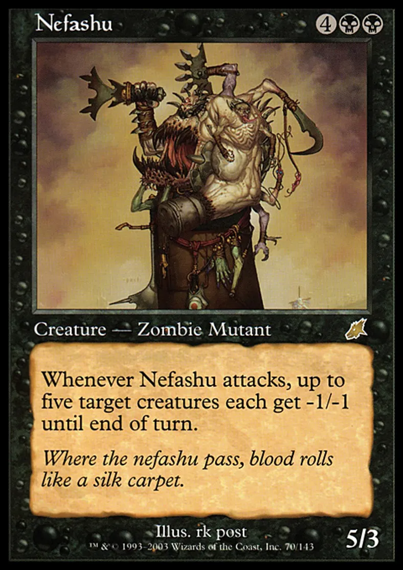 | Oracle Text | Whenever Nefashu attacks, up to five target creatures each get -1/-1 until end of turn. | ||