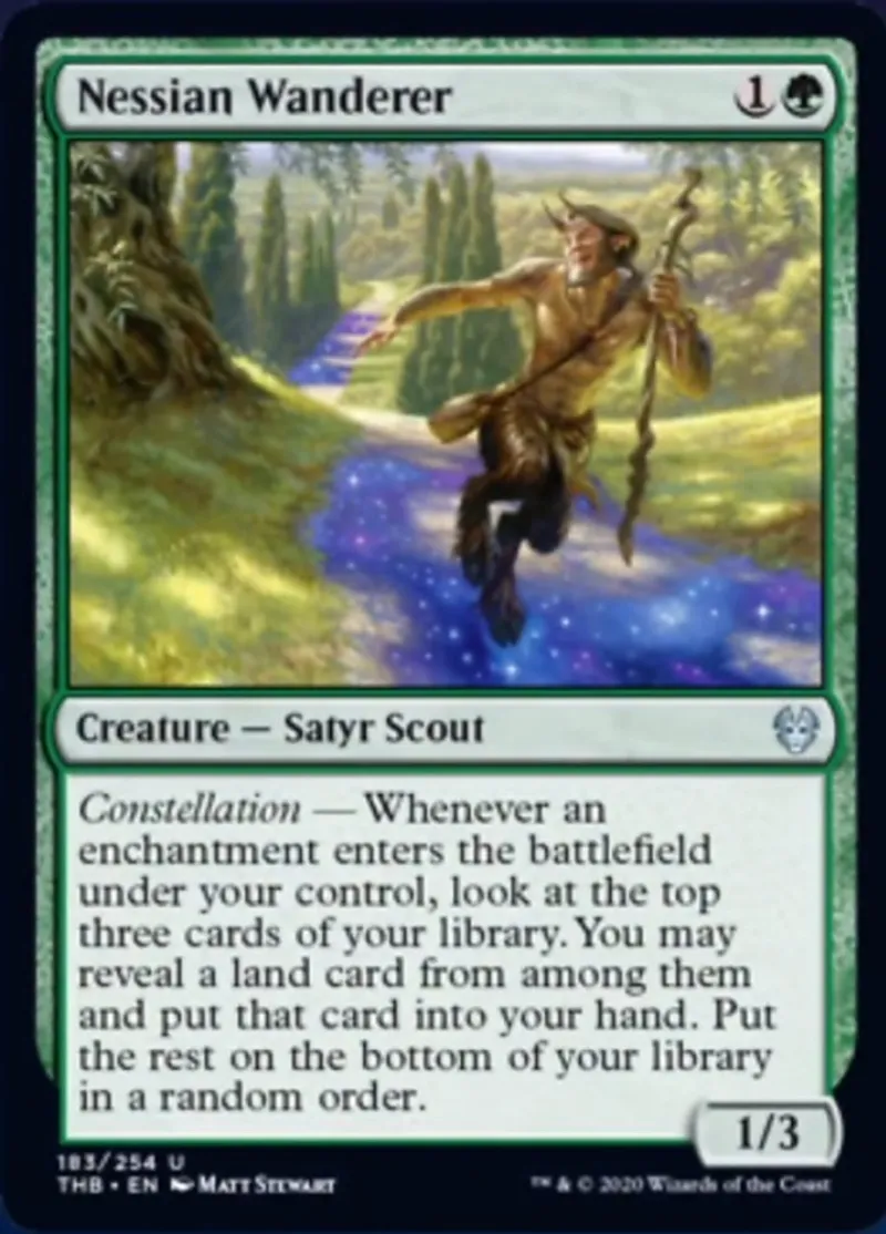 Magic: the Gathering (mtg) uncommon Creature — Satyr Scout Nessian Wanderer from Theros Beyond Death (thb) last updated 2026-02-21 17:01:36