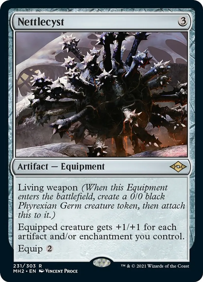 Magic: the Gathering (mtg) rare Artifact — Equipment Nettlecyst from Modern Horizons 2 (mh2) last updated 2026-02-25 15:05:03
