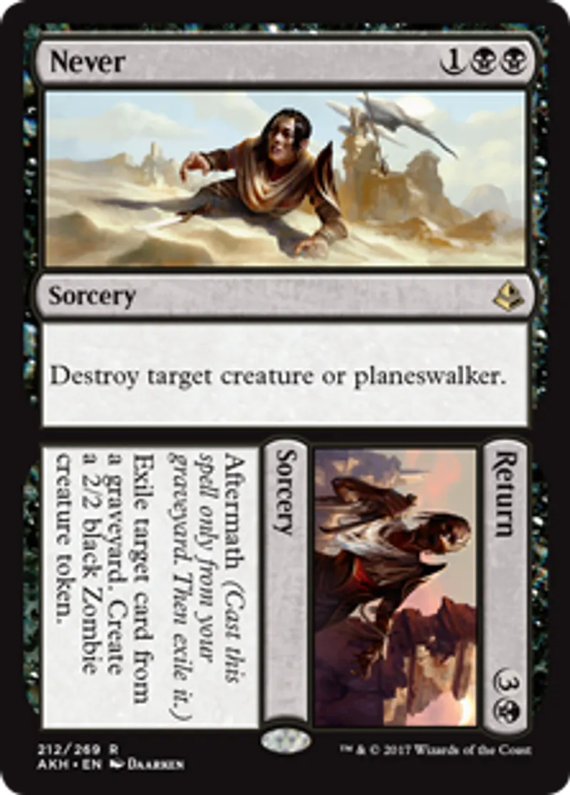 Magic: the Gathering (mtg) Rare Sorcery Never // Return from Amonkhet (AKH) last updated 2026-02-21 16:46:02