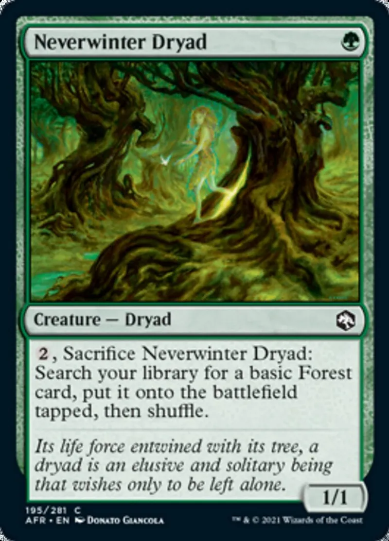 Neverwinter Dryad is a common in the set Adventures in the Forgotten Realms.