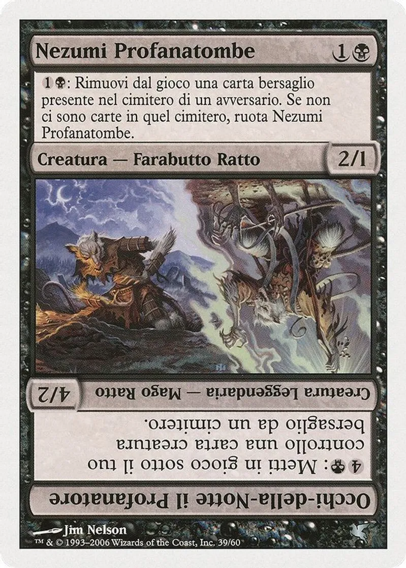 Nezumi Graverobber // Nighteyes the Desecrator (Italian) - "Nezumi Profanatombe" (A39) is a Uncommon in the set Salvat 2005.