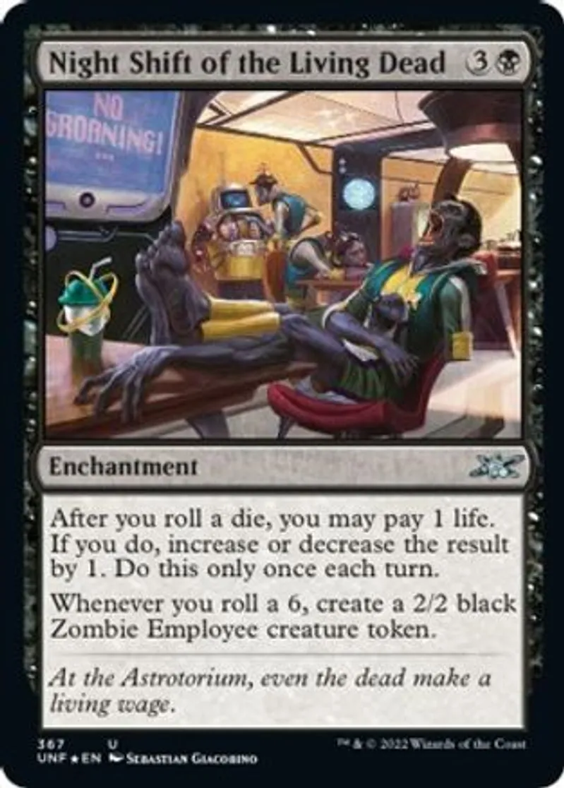 Magic: the Gathering (mtg) Uncommon Enchantment Night Shift of the Living Dead from Unfinity (UNF) last updated 2026-02-25 14:24:32