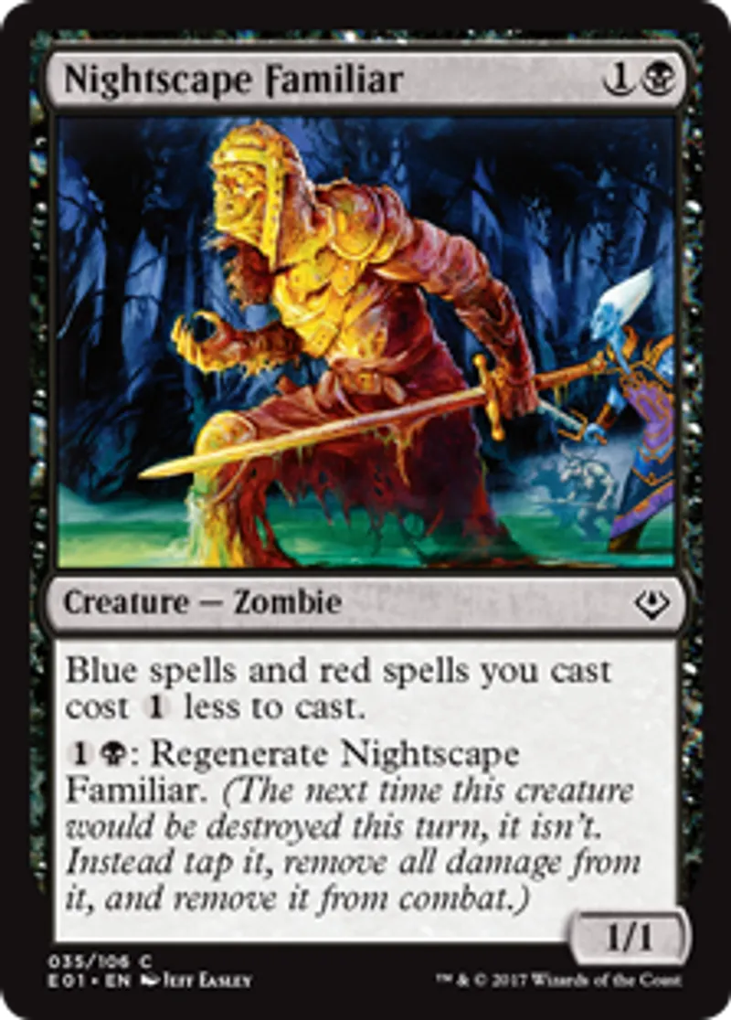 | Oracle Text | Blue spells and red spells you cast cost {{1}} less to cast. {{1}}{{b}}: Regenerate Nightscape Familiar. | ||
