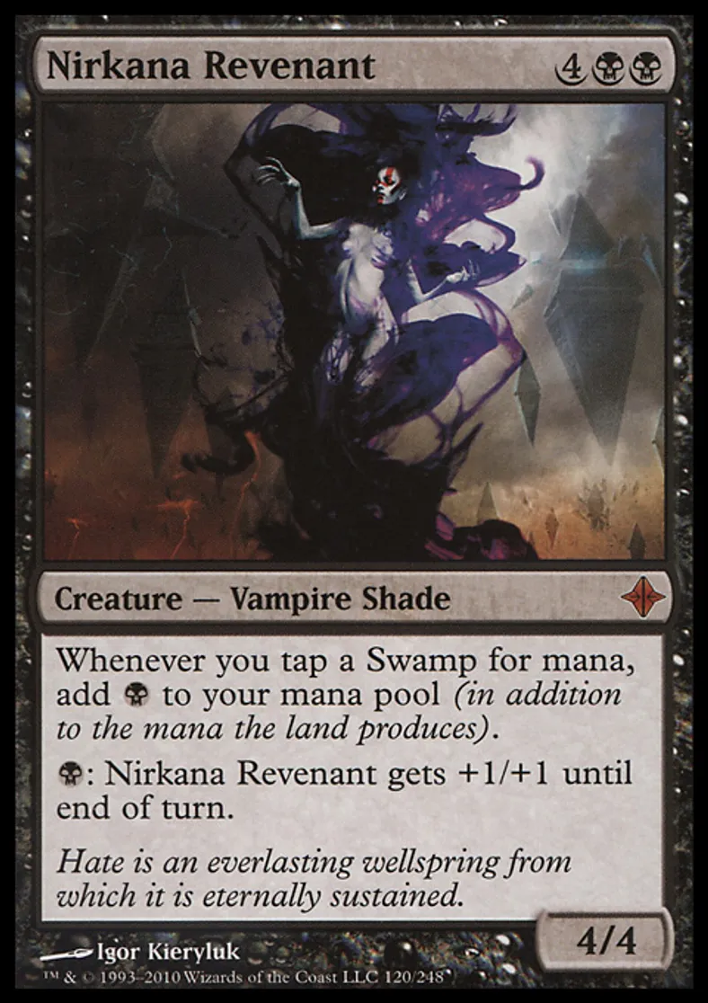 | Oracle Text | Whenever you tap a Swamp for mana, add {{b}} to your mana pool (in addition to the mana the land produces). {{b}}: Nirkana Revenant gets +1/+1 until end of turn. | ||