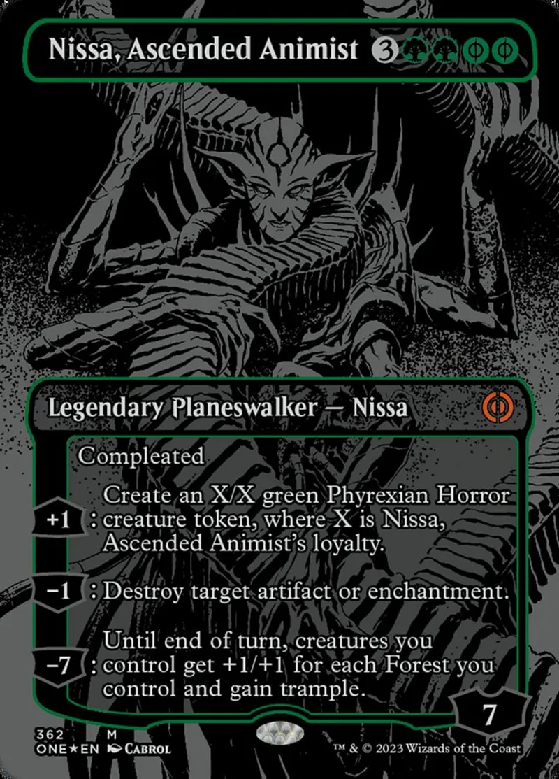 Magic: the Gathering (mtg) Mythic Rare Legendary Planeswalker — Nissa Nissa, Ascended Animist from Phyrexia: All Will Be One (one) last updated 2026-02-24 15:41:32