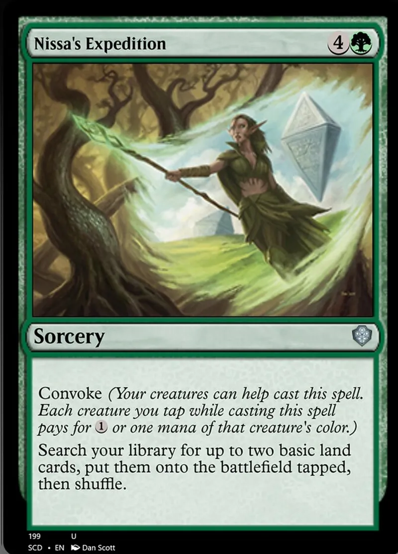 Magic: the Gathering (mtg) uncommon Sorcery Nissa's Expedition from Starter Commander Decks (scd) last updated 2026-02-21 16:19:33