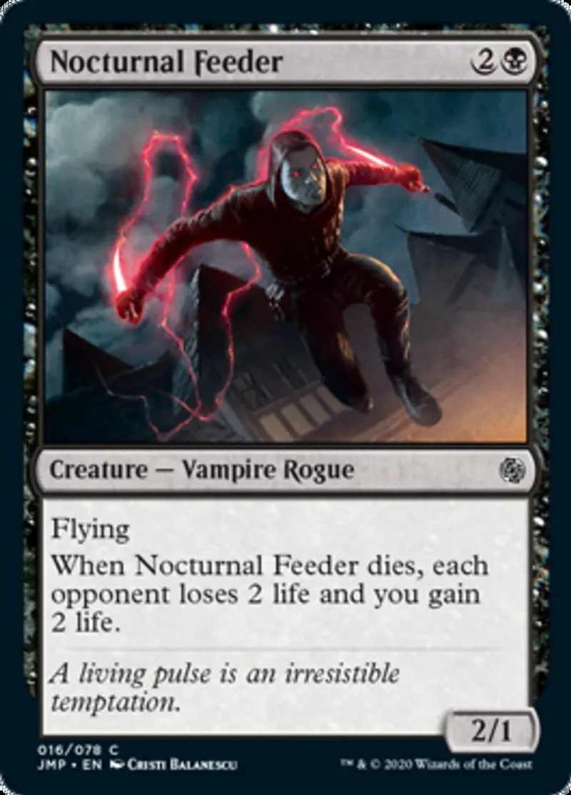 Magic: the Gathering (mtg) common Creature — Vampire Rogue Nocturnal Feeder from Jumpstart (jmp) last updated 2026-02-21 16:27:02