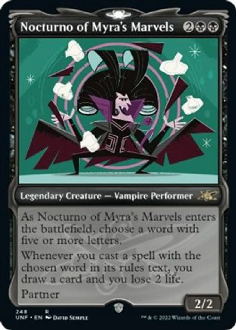 | Oracle Text | As Nocturno of Myra's Marvels enters the battlefield, choose a word with five or more letters.