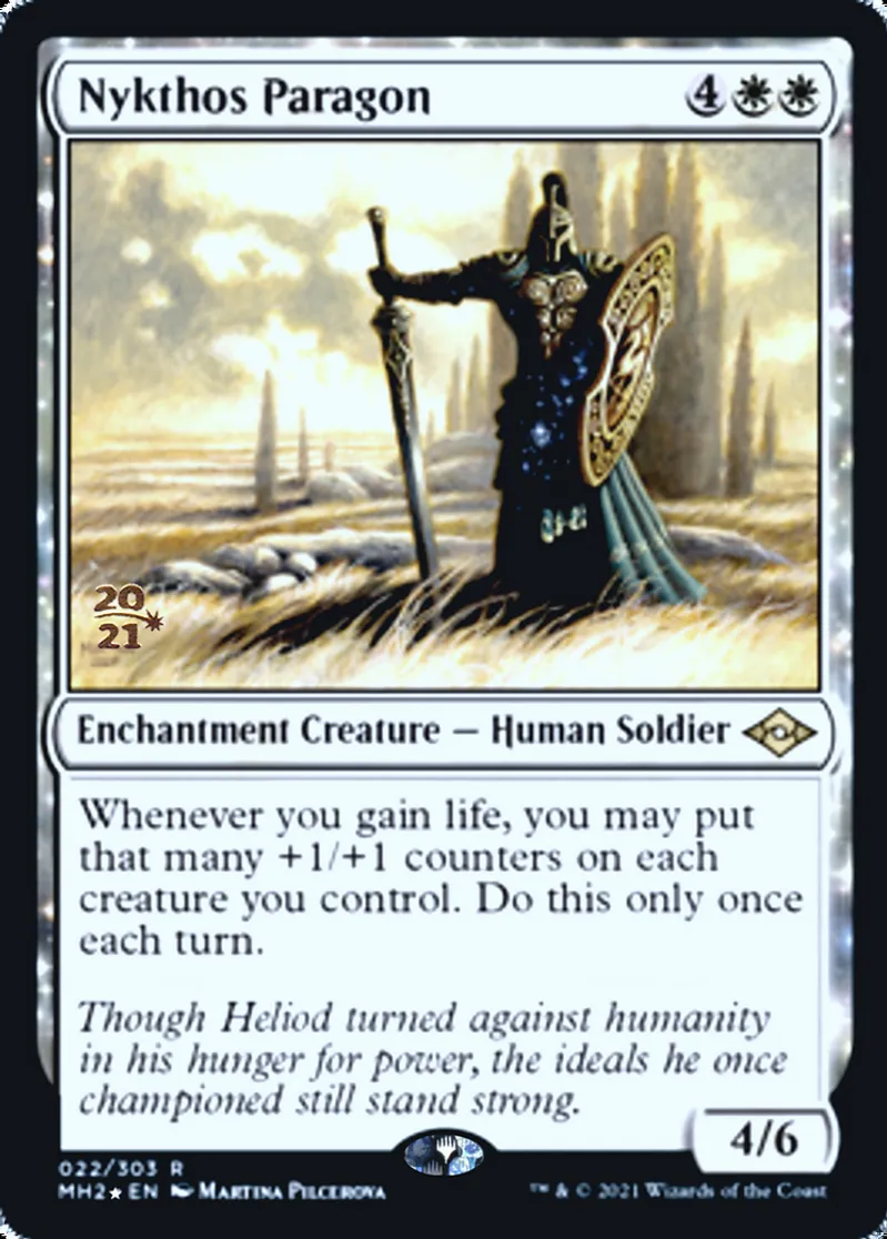Magic: the Gathering (mtg) Rare Enchantment Creature — Human Soldier Nykthos Paragon from Prerelease Cards (pPRE) last updated 2026-02-25 14:34:06