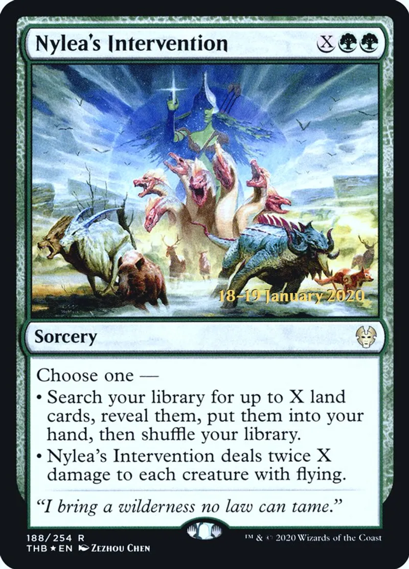 • Nylea’s Intervention deals twice X damage to each creature with flying. | ||