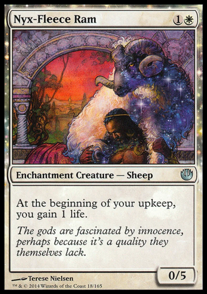 Magic: the Gathering (mtg) Uncommon Enchantment Creature - Sheep Nyx-Fleece Ram from Journey into Nyx (JOU) last updated 2026-02-24 14:36:33