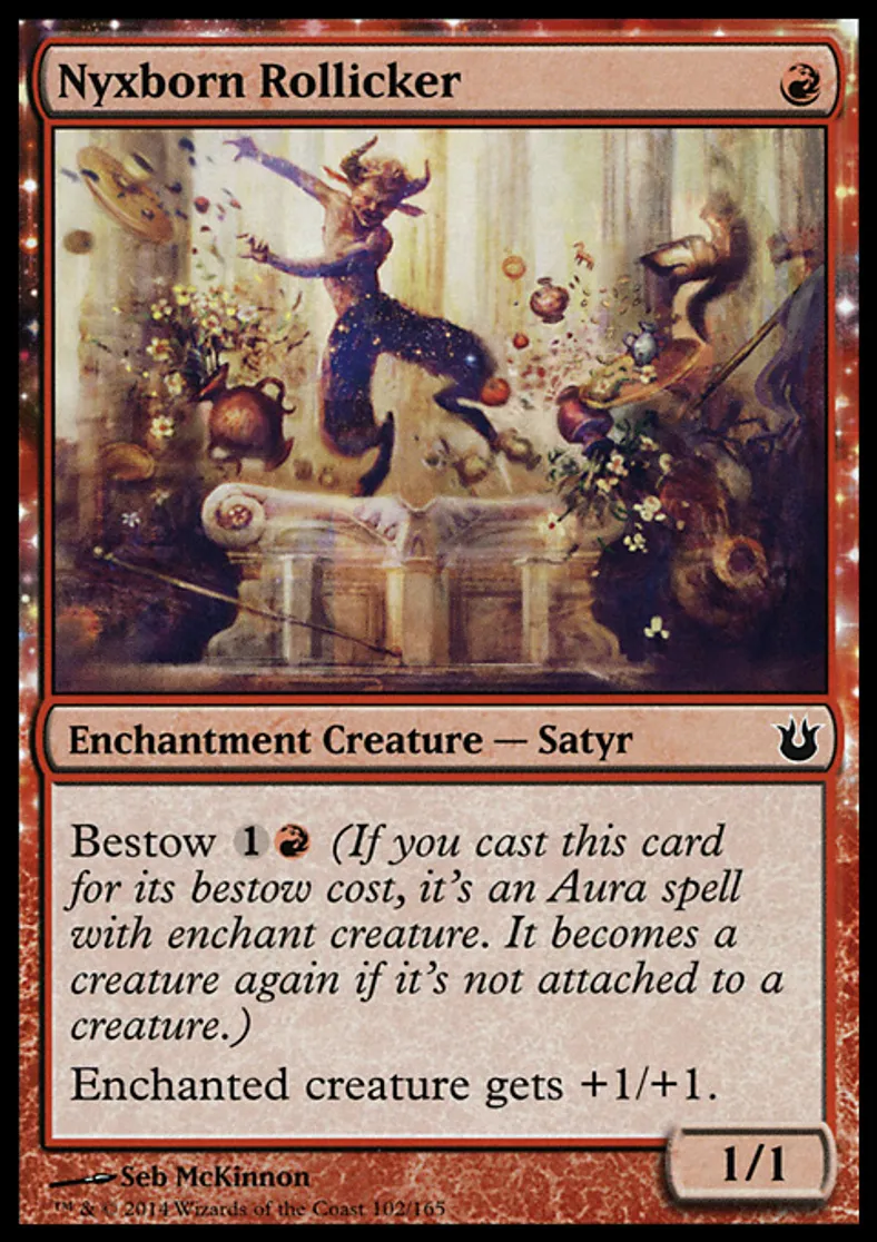 Magic: the Gathering (mtg) Common Enchantment Creature - Satyr Nyxborn Rollicker from Born of the Gods (BNG) last updated 2026-02-21 17:16:32
