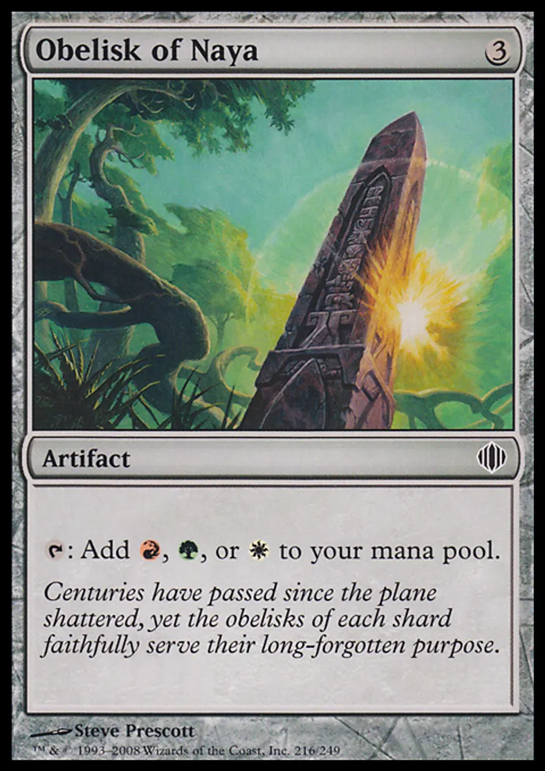 Obelisk of Naya is a Common in the set Shards of Alara.