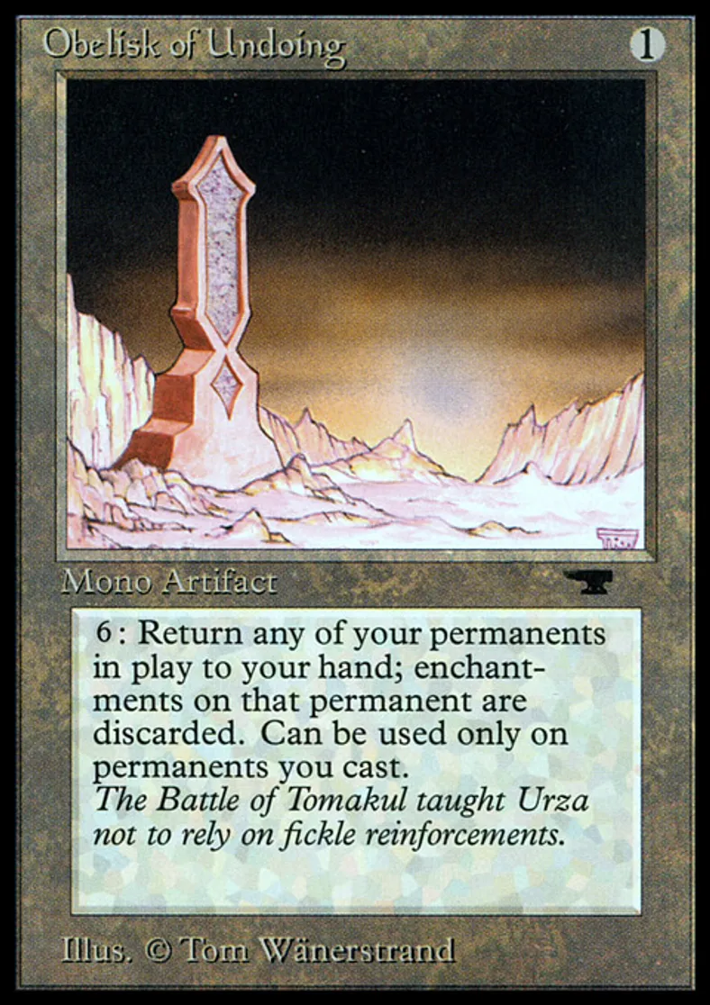 Obelisk of Undoing is a Rare in the set Antiquities.