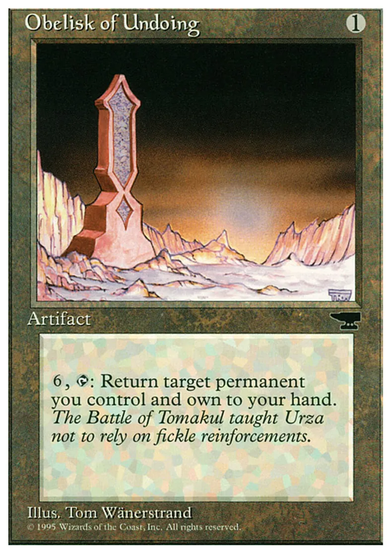 Obelisk of Undoing is a Rare in the set Chronicles.