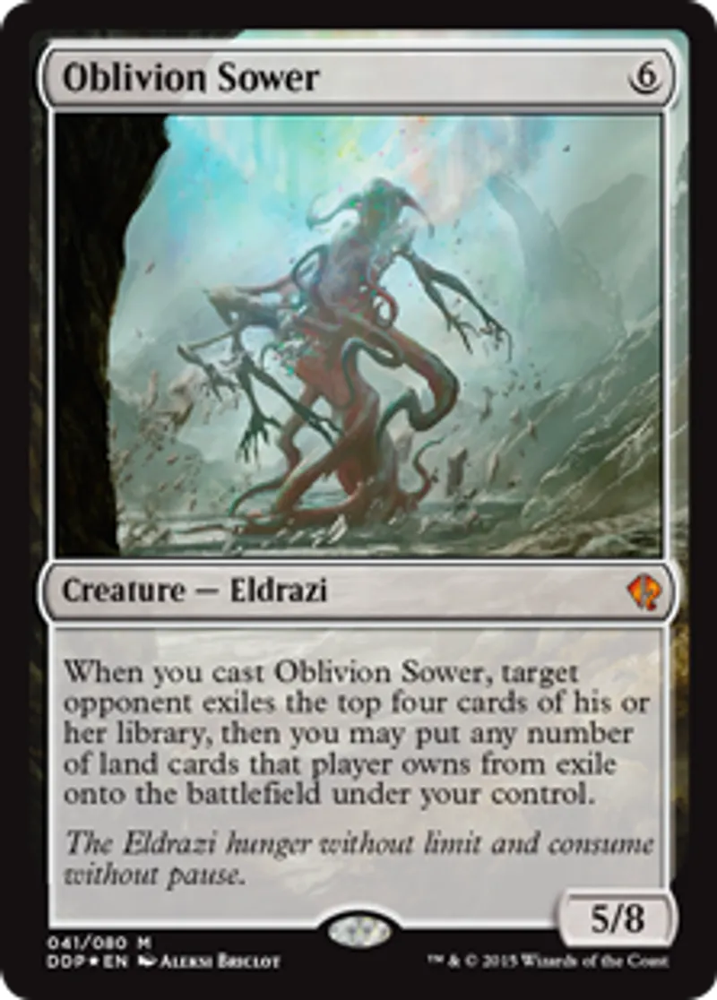 | Oracle Text | When you cast Oblivion Sower, target opponent exiles the top four cards of his or her library, then you may put any number of land cards that player owns from exile onto the battlefield under your control. | ||
