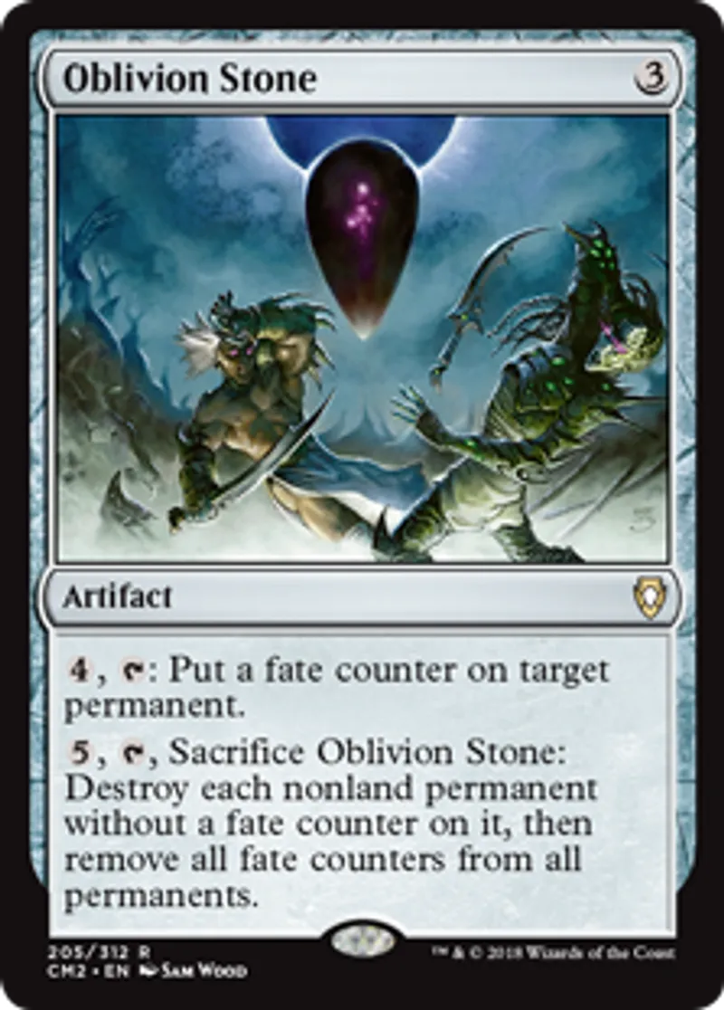 | Oracle Text | {{4}}, {{t}}: Put a fate counter on target permanent. {{5}}, {{t}}, Sacrifice Oblivion Stone: Destroy each nonland permanent without a fate counter on it, then remove all fate counters from all permanents. | ||