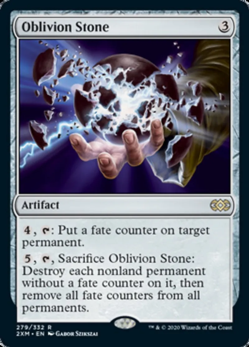 {5}, {T}, Sacrifice Oblivion Stone: Destroy each nonland permanent without a fate counter on it, then remove all fate counters from all permanents. | ||