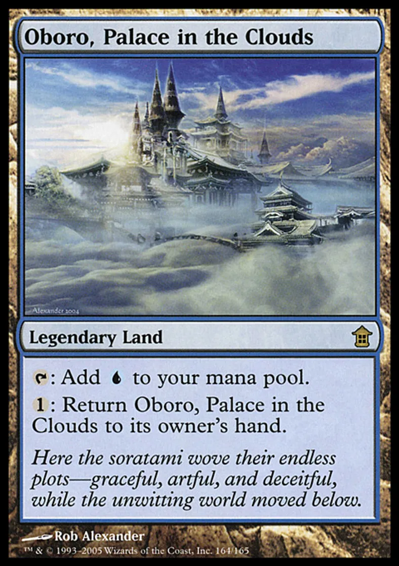 | Oracle Text | {{t}}: Add {{u}} to your mana pool. {{1}}: Return Oboro, Palace in the Clouds to its owner's hand. | ||