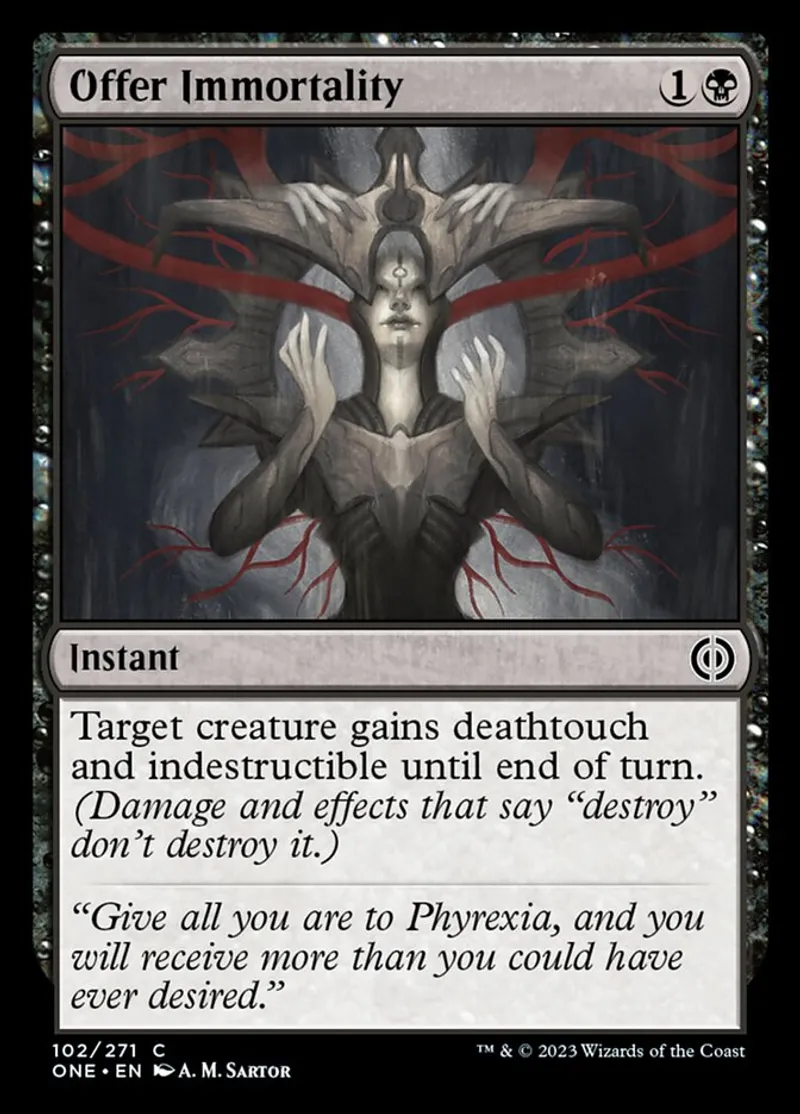 Magic: the Gathering (mtg) common Instant Offer Immortality from Phyrexia: All Will Be One (one) last updated 2026-02-21 16:20:32
