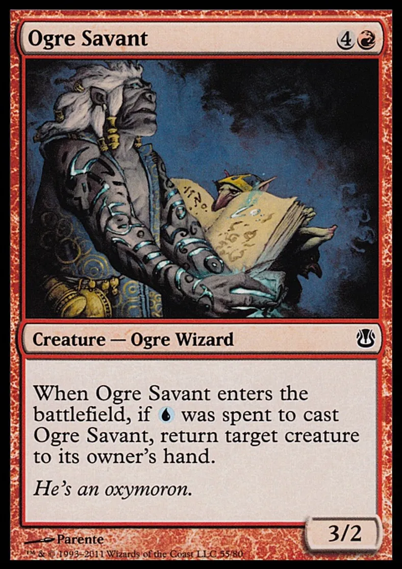 | Oracle Text | When Ogre Savant enters the battlefield, if {{u}} was spent to cast Ogre Savant, return target creature to its owner's hand. | ||
