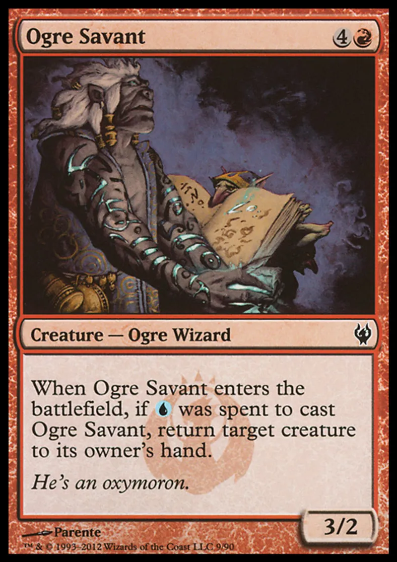 | Oracle Text | When Ogre Savant enters the battlefield, if {{u}} was spent to cast Ogre Savant, return target creature to its owner's hand. | ||