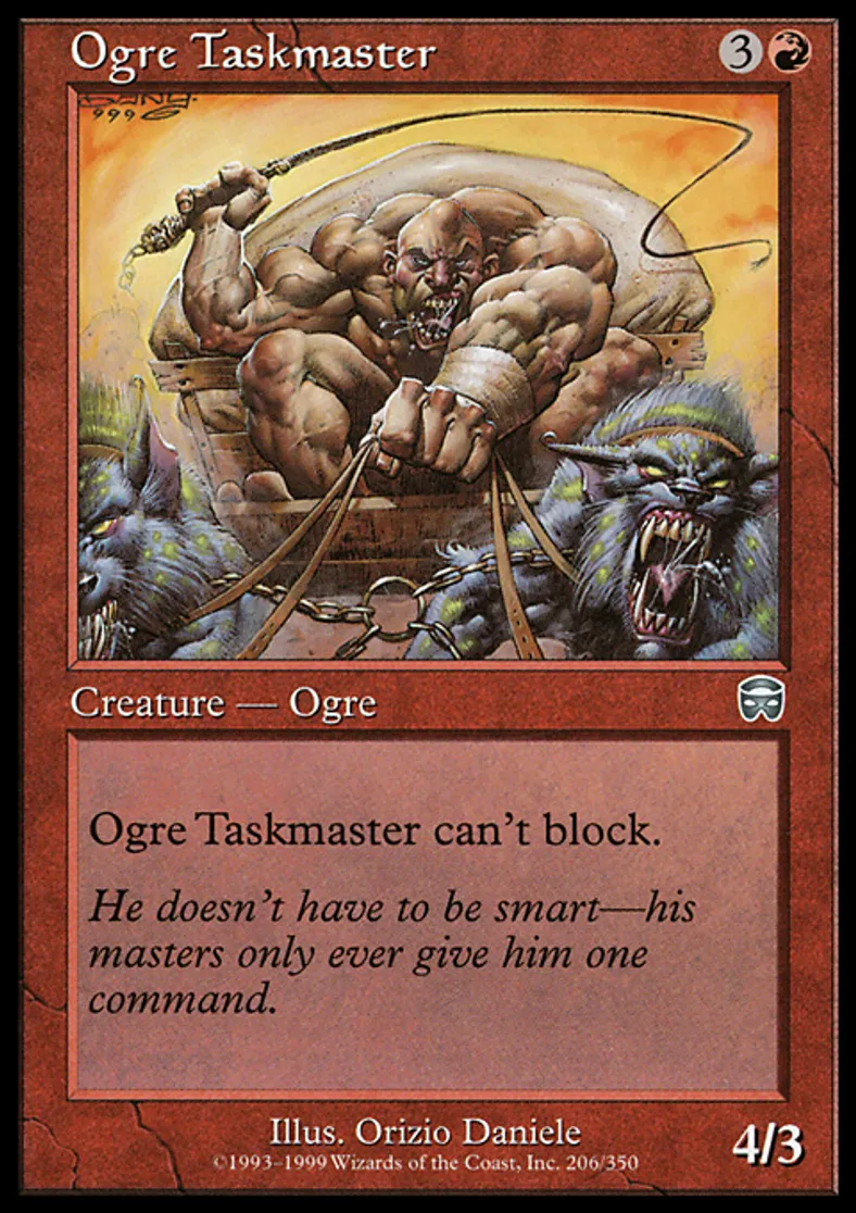 | Oracle Text | Ogre Taskmaster can't block. | ||