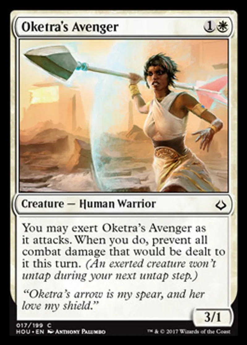 | Oracle Text | You may exert Oketra's Avenger as it attacks. When you do, prevent all combat damage that would be dealt to it this turn. (An exerted creature won't untap during your next untap step.) | ||