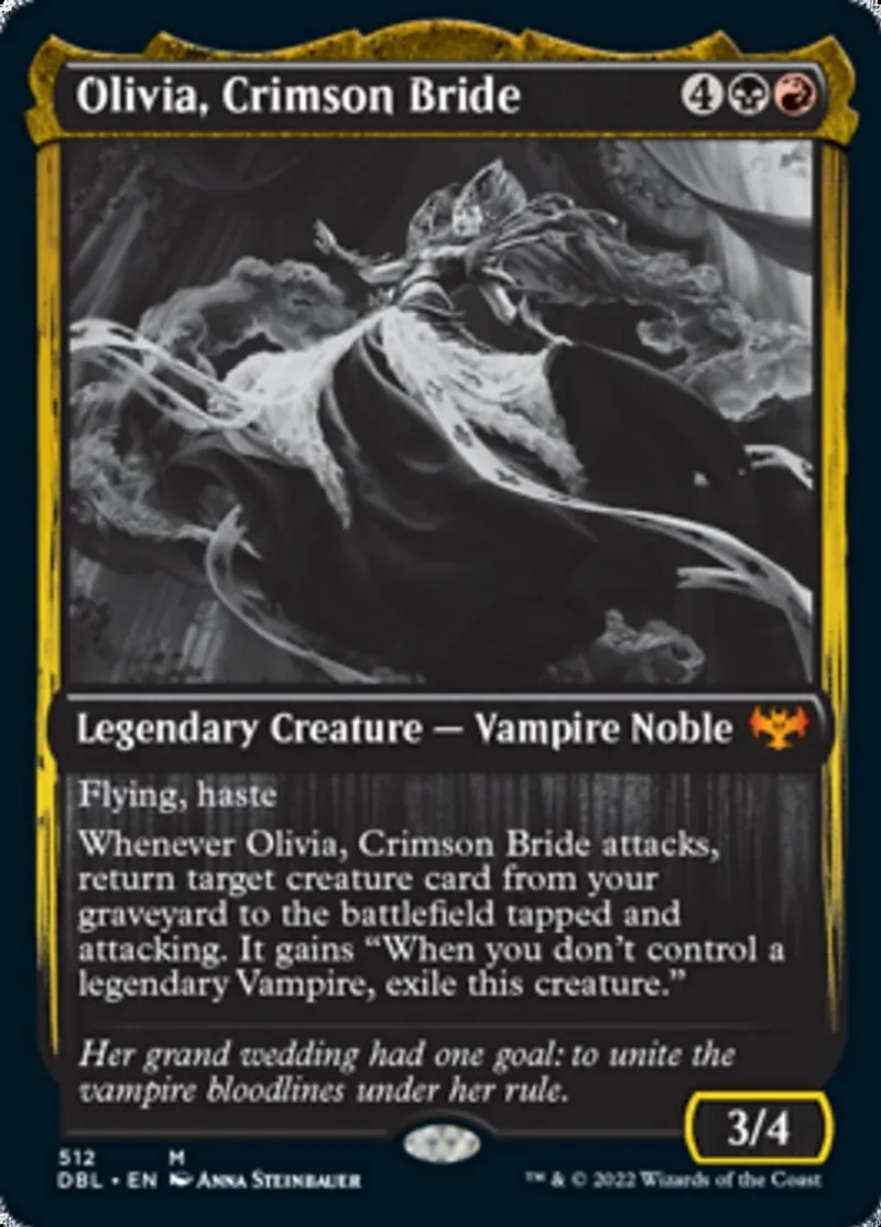 Magic: the Gathering (mtg) mythic Legendary Creature — Vampire Noble Olivia, Crimson Bride from Innistrad: Double Feature (dbl) last updated 2026-02-24 14:34:32