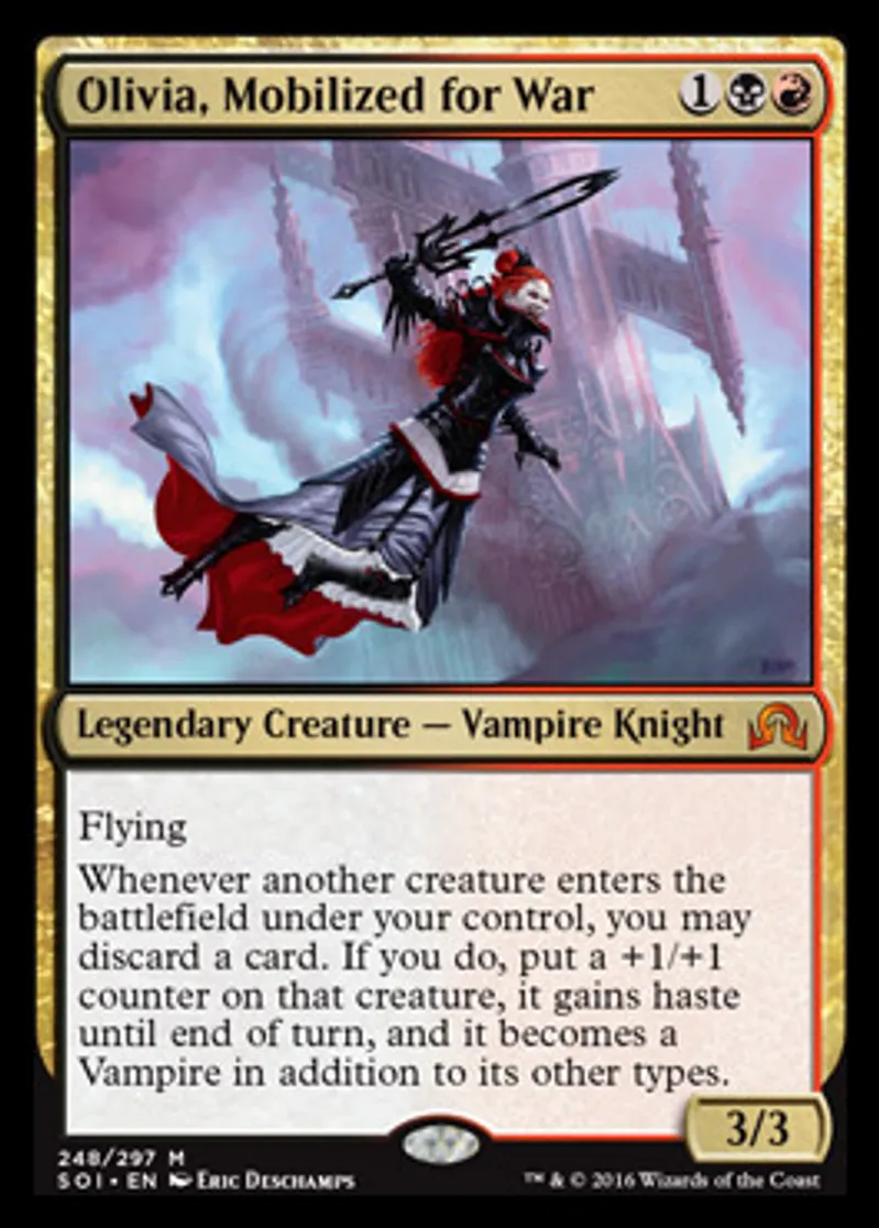 Magic: the Gathering (mtg) Mythic Rare Legendary Creature - Vampire Knight Olivia, Mobilized for War from Shadows over Innistrad (SOI) last updated 2026-02-25 14:37:38